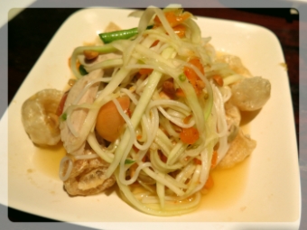 | Quick Review: | Som Tam Nua is famous for their Som Tam (Green Papaya Salad) with reasonable price. We ordered Som Tam with Crispy Pork Rind (Fried Pork Skin). Interesting combination. We also ordered Fried Fish, Fried Chicken and Sticky Rice. |