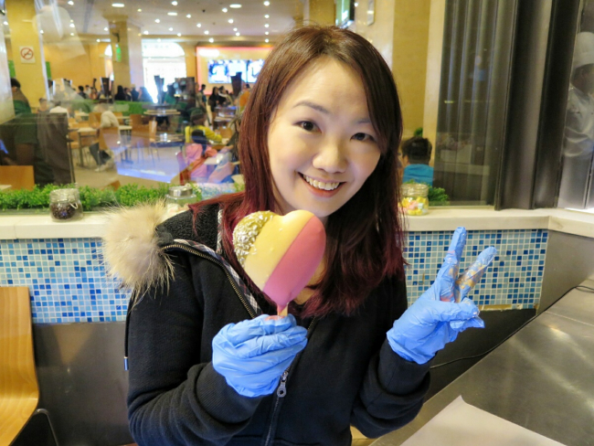 | Quick Review: | So colorful! The look of it is already so appetising. The texture is so creamy and smooth. Remind me of the gelato I had in Italy and Switzerland~ Their ice cream ingredients are imported from Italy!~ The lower percentage of fat is another great point of the ice cream and it is sterilised by the UHT method. It also has no added colours, preservatives and additives. A key ingredient to the awesome gelato is the best quality milk product that they are using. We get to even try to design our own ice cream. Look at my 3 colours heart shaped ice cream. So Dreamy! |